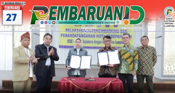 Kerja sama ini diwujudkan dalam kegiatan Benchmarking dan Penandatanganan Nota Kesepahaman (MoU) yang dilaksanakan Senin, (27/2/2023) di Student Center FEB Unila.